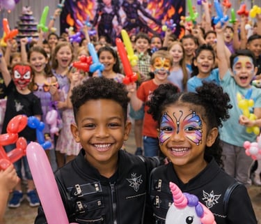 Make your event unforgettable with our customizable entertainment packages! Our parties are designed for kids between the ages 1–12, these packages include magic, balloon twisting, face painting, and more. Each of these packages are booked based on how many children are attending your event and how long you need us.